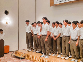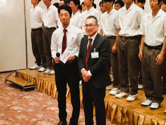 飯山真孝会長(第2期生)が、1年生(第48期生)6名+マネージャー3名に